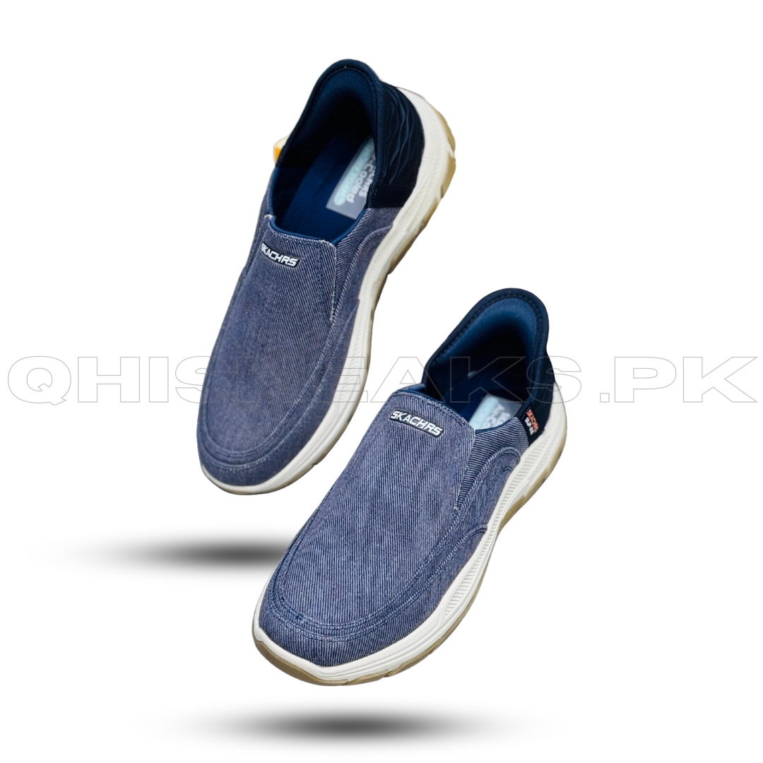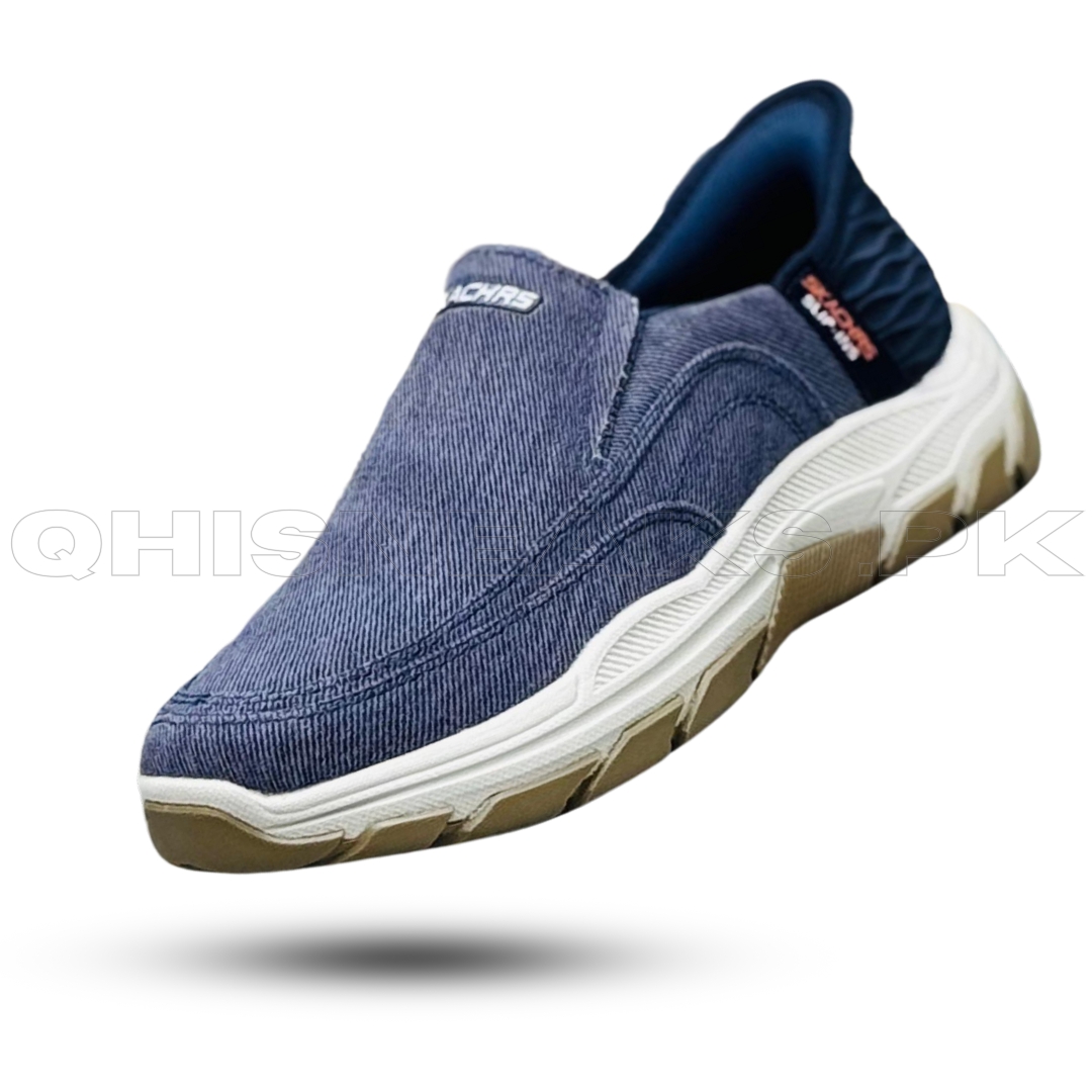 Hands Free Slip-ins® Relaxed Fit®: Melson – Coronado. Designed with our exclusive Heel Pillow™, this moc toe style features a Skechers Slip-ins® molded heel panel with a canvas upper, knotted deco laces, and a charcoal-infused Skechers Air-Cooled