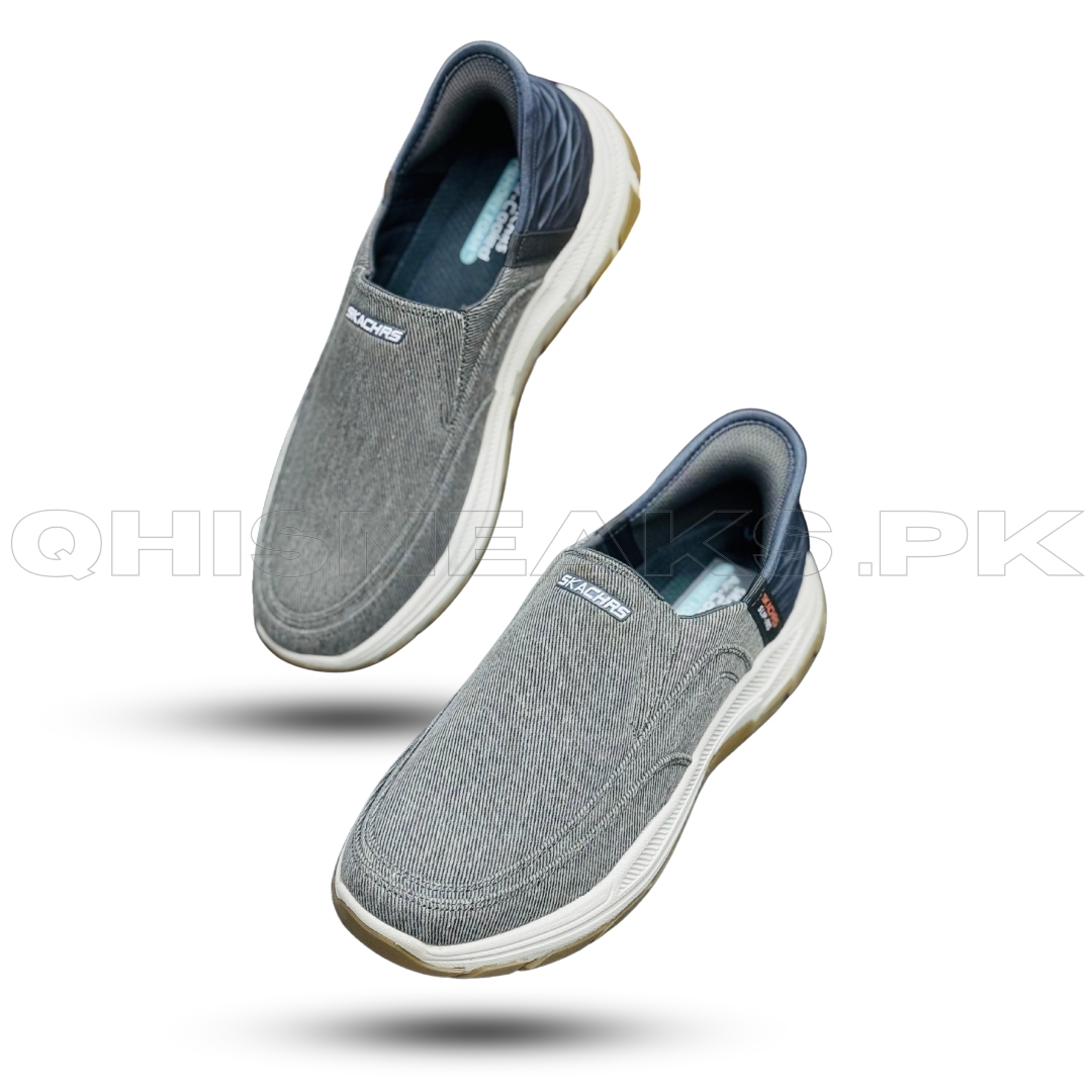 Hands Free Slip-ins® Relaxed Fit®: Melson – Coronado. Designed with our exclusive Heel Pillow™, this moc toe style features a Skechers Slip-ins® molded heel panel with a canvas upper, knotted deco laces, and a charcoal-infused Skechers Air-Cooled